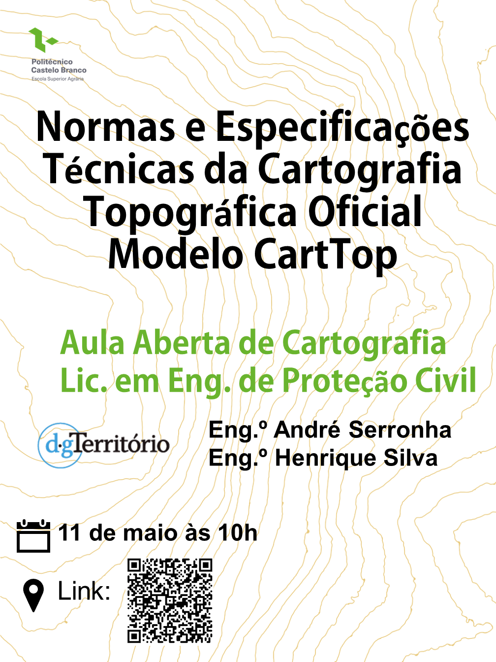 No âmbito da Unidade Curricular de Cartografia da Licenciatura em Engenharia de Proteção Civil, convidamos para a Aula Aberta realizada pela Direção-Geral do Território sobre as: