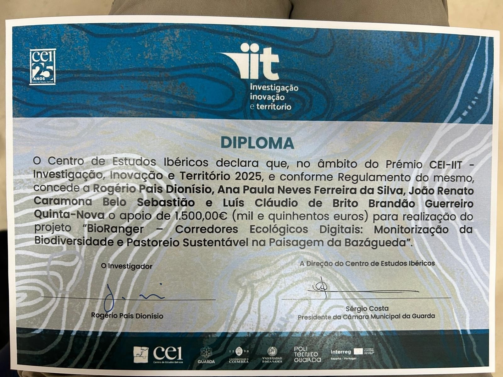 Projeto BioRanger distinguido com Prémio CEI-IIT 2025
