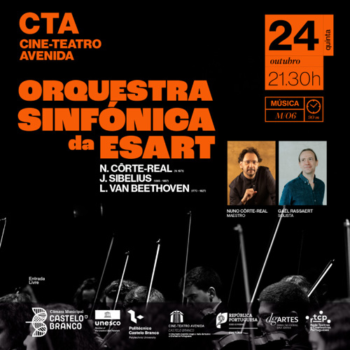 A Orquestra Sinfónica da ESART, realizará um concerto no dia 24 de outubro, no Cine-Teatro Avenida, pelas 21h30.