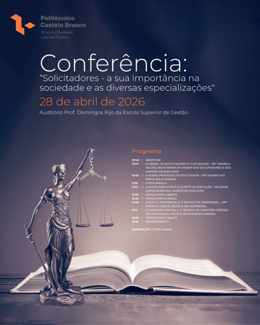 No próximo dia 28 de abril, decorrerá no Auditório Professor Domingos Rijo, nas instalações da Escola Superior de Gestão de Idanha-a-Nova – School of Business, Law and Tourism do IPCB, a conferência “Solicitadores – a sua importância na sociedade e as diversas especializações”.